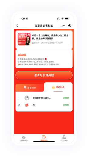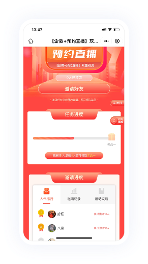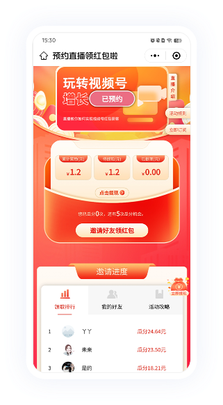 邀請好友預約直播獲得紅包獎勵