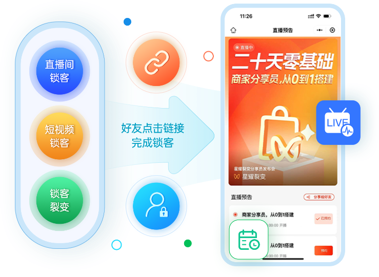 分享直播間,好友點擊鏈接,鎖客成功